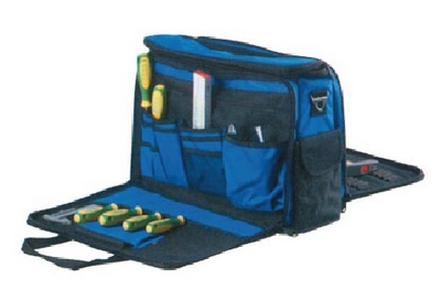 帆布,极其耐用。 类型: 顶部拉手,可调节背带,标记物品的索引袋。 2个大文件袋,带魔术贴。 2个侧边夹层袋,可打开至垂直90度。 前部隔层:可放置标准A4大小的文件袋; 17个插袋,可放置工具和测试测量设备;1个小物件插袋。 前部隔层:4个大文件袋;28个弹性扣;独立空间, 可放置笔记本电脑和文件;中间有可拆卸隔板。 不含工具。