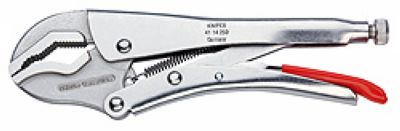 牢固夹持圆形物料,型材及平扁物料;大力型;配备有调节螺钉和释放杆;单手操作;由于肘杆作用,具有较大的夹持力;钳体:采用高强度特殊工具钢材料;双棱柱型钳口,更容易夹持圆形物料,型材及扁平物料;头部用于夹持圆形工件,配备有断线刀口;长度250,头部镀镍,镀镍手柄