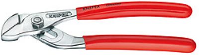 四个不同位置可调整钳口大小,操作方便;采用滑花设计,防滑咬合;所有应力通过接合螺钉消化,确保枢轴无磨损;长度125,头部镀铬,塑料套柄操作范围管子17,螺母14