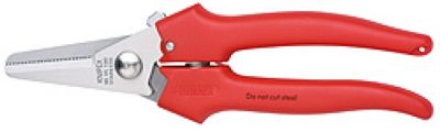 多功能剪可用来剪切纸板,塑料,铝箔和铜箔;不可用于剪切钢丝或薄铁板;采用可调式螺钉接合;应用复位弹簧和锁紧装置;长度190,钳头抛光,塑料套柄