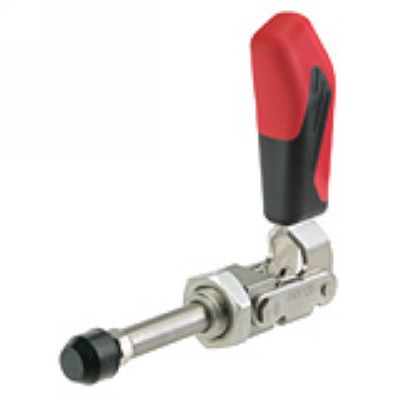 short version. For push and pull-clamping. Stainless steel, polished. Long rod-guide with attaching thread and nut. Shoulder screws pasted into thread. Bearings are pre-lubricated. Ergonomic, oil-resistant handle with large grip surface and soft component