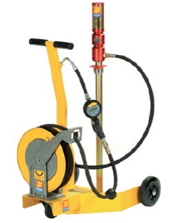 ME1298E用于180-220L油桶,配有: R=5:1bar气动提油泵 四轮手推车 1.5m R1 1/2”内螺纹--内螺纹油管 10m,R1 3/8” 提油软管卷盘 数显流量计数油嘴