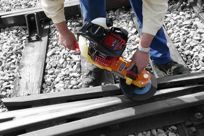 紧凑,质轻,普遍使用 可独立操作,无需额外电源 采用360°倾斜科技使其运用普遍 适用于岔心,槽轨,接触和信号科技的准备 用于工具少的磨轮转换的快速调换设备和快速调节火花保护 离心式离合器和发动机停止开关