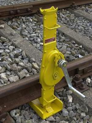 用于提升和降落重物,如钢轨,轨排 有大的加强的脚板/支柱垫板的坚固设计 有负荷压迫制动器和可折叠手柄的安全手摇曲柄